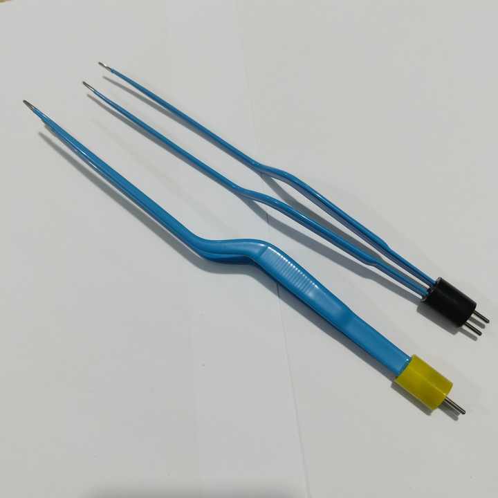คีมคีบสองขั้วชนิดใช้แล้วทิ้ง คุณภาพสูง ผลิตจากเหล็กกล้าไร้สนิมเยอรมันเกรดสูง สีฟ้า คีมคีบพลาสติกไฟฟ้าสำหรับการผ่าตัด
