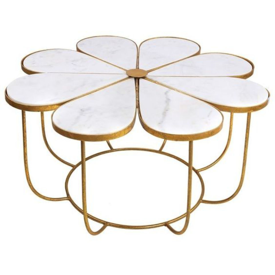 โต๊ะกาแฟดีไซน์หรูหรา โครงโลหะชุบทองคุณภาพสูง ท็อปหินอ่อนสีขาว ประดับดอกไม้ เหมาะสำหรับบ้าน โรงแรม ห้องนั่งเล่น