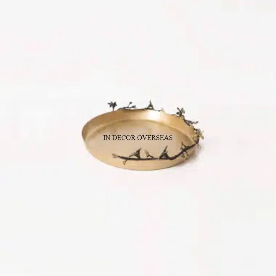 ถาดโลหะเคลือบทองคุณภาพสูงทรงกลมสีดำดีไซน์เนอร์ที่เป็นเอกลักษณ์ถาดเสิร์ฟและตกแต่ง