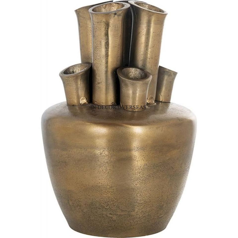 แจกันดอกไม้เกรดสูงเคลือบทองคุณภาพดีกว่าอะลูมิเนียมหล่อจากดีไซเนอร์โบราณที่สะดุดตา