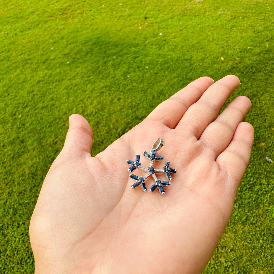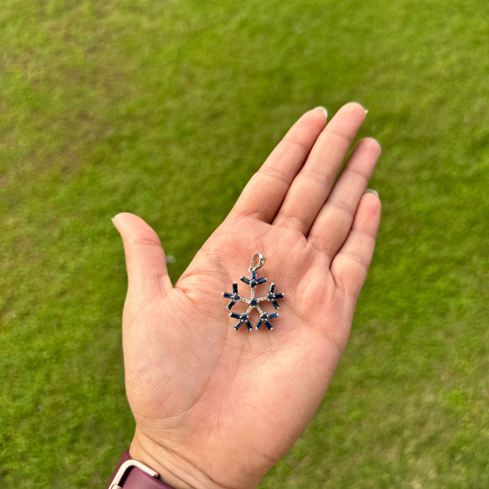 จี้รูปดอกไม้เงินแท้ประดับไพลินสีน้ำเงินธรรมชาติ 100% ขัดเงาอย่างดี ชุบโรเดียม เครื่องประดับชั้นดี สำหรับคนเกิดเดือนกันยายน