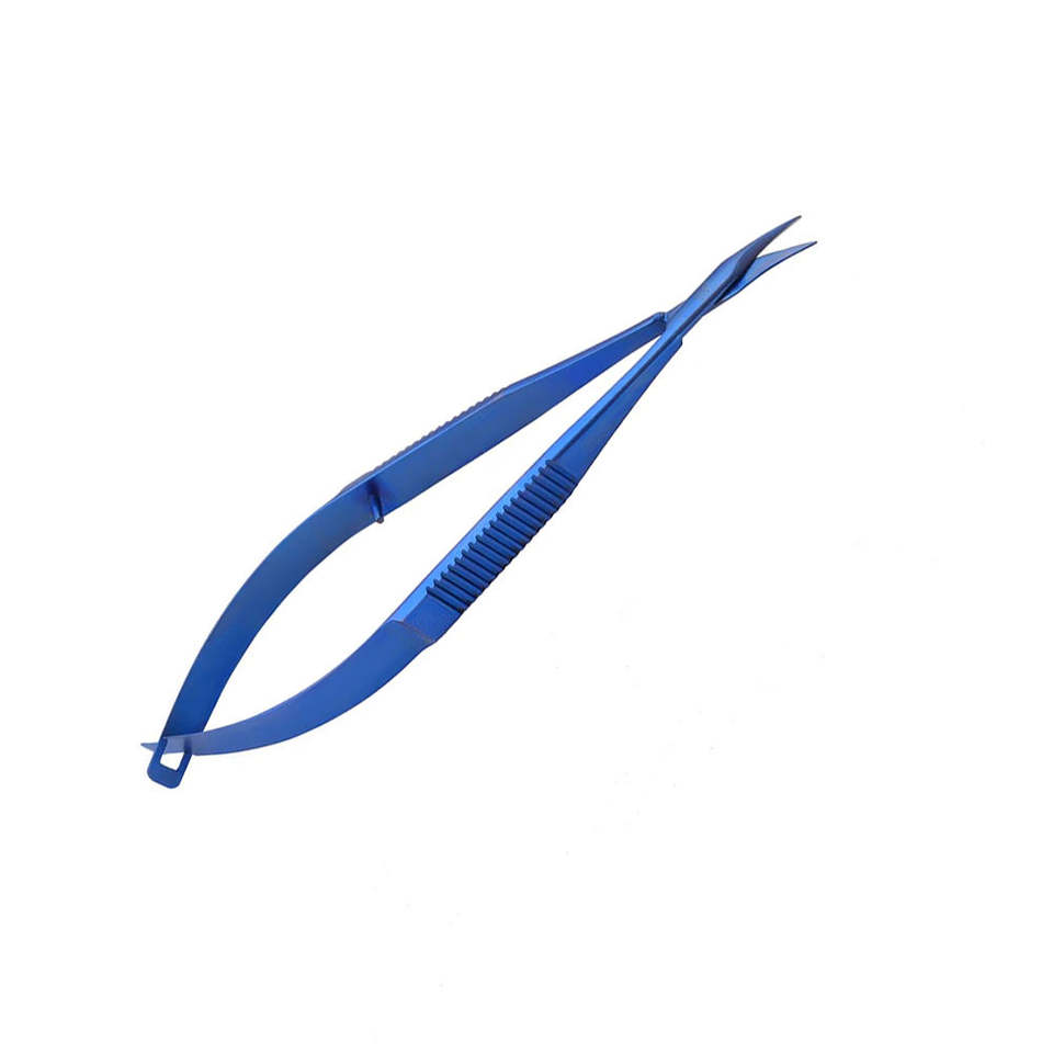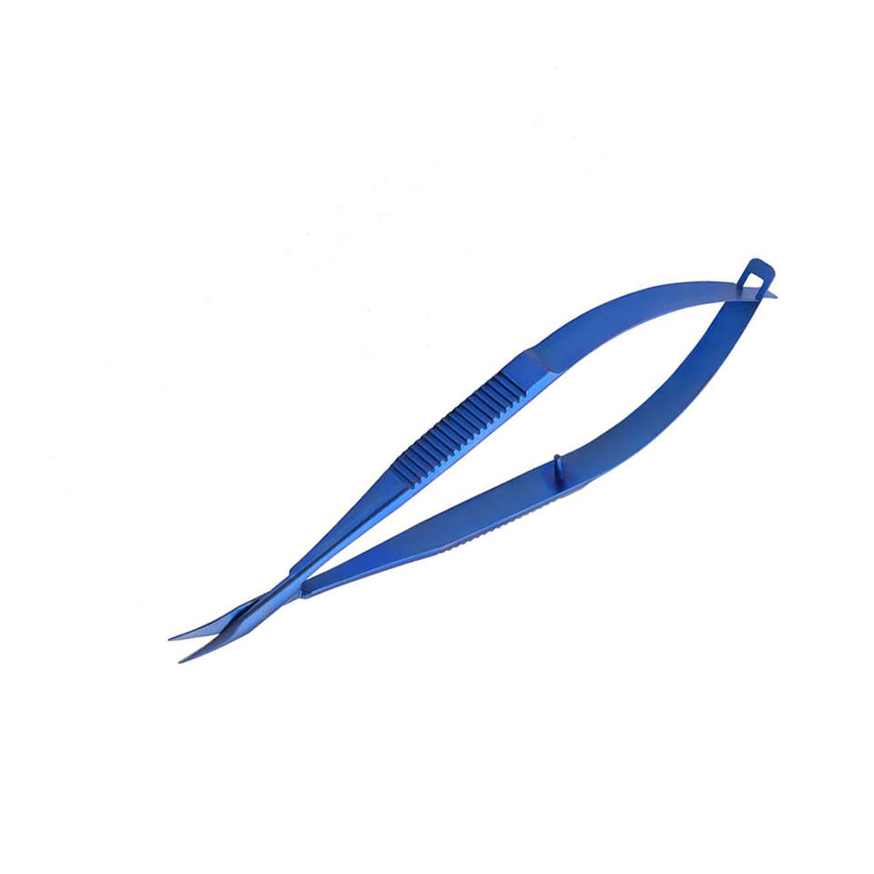 กรรไกรผ่าตัดขนาดเล็กเกรดสูงกรรไกรเหล็กใบมีดโค้งไทเทเนียมสีฟ้าเคลือบด้วยไทเทเนียม16cm