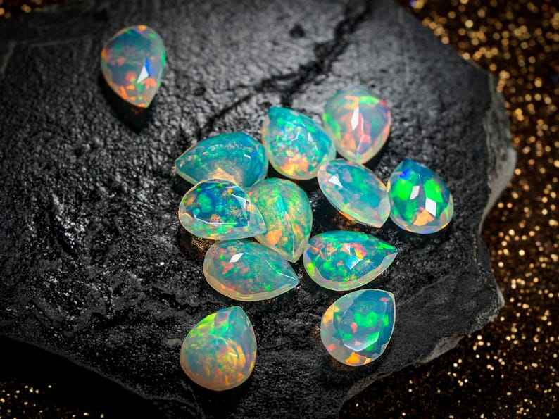 หินโอปอลแบบเอธิโอเปียนธรรมชาติคุณภาพสูงพลอยโอปอลไฟโอปอลแบบจุดไฟหลายจุดหินลูกแพร์หลวมสำหรับทำเครื่องประดับ