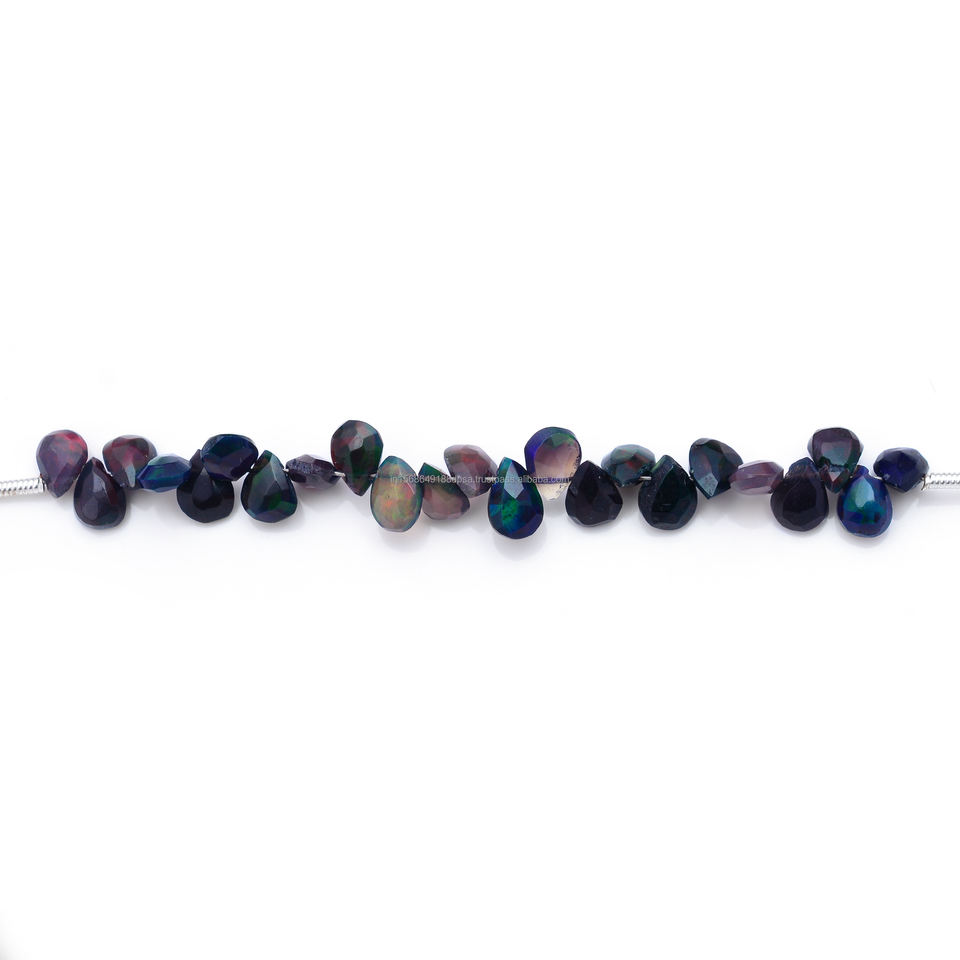 ลูกปัดโอปอลเอธิโอเปียสีดำธรรมชาติคุณภาพสูง รูปทรงลูกแพร์เจียระไน สำหรับทำเครื่องประดับทำมือ สร้อยคอ สร้อยข้อมือ