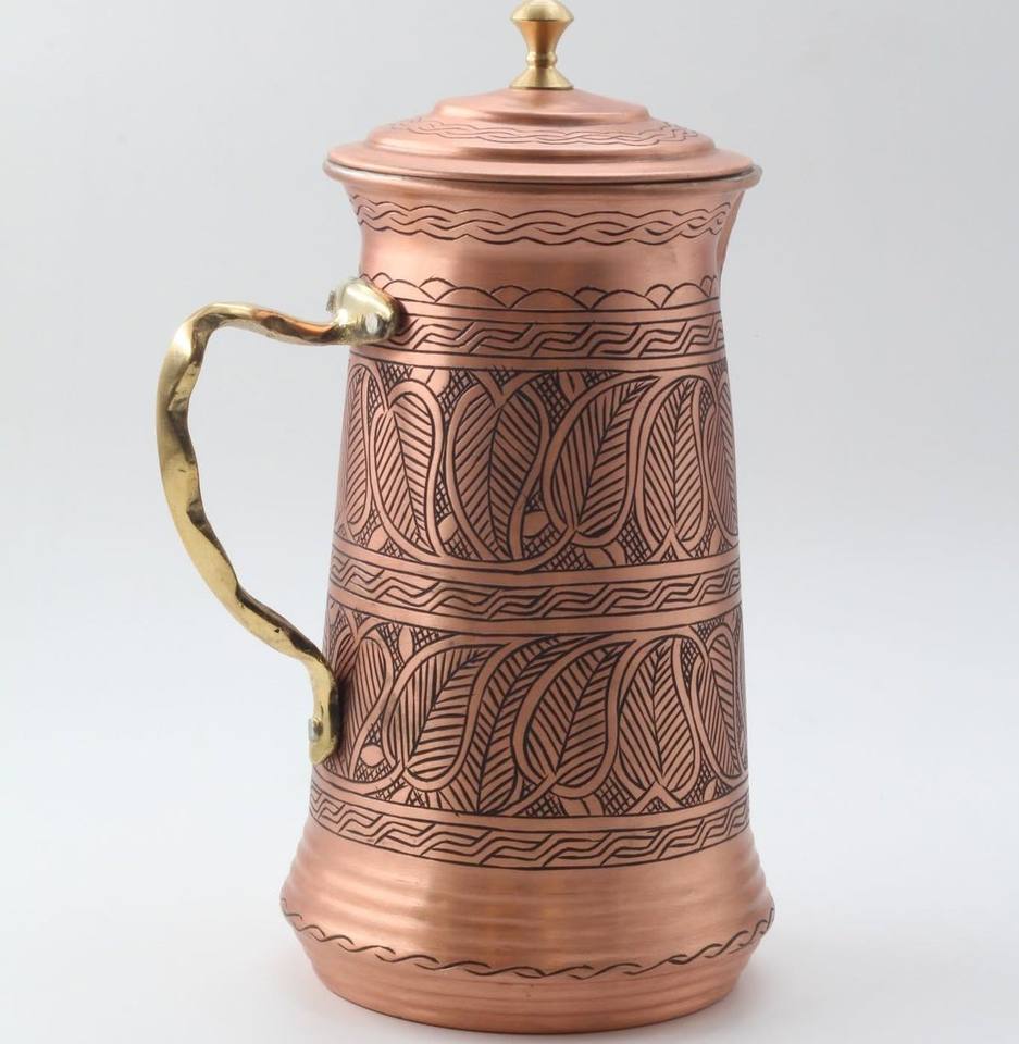 เหยือกน้ำทองแดงธรรมชาติคุณภาพสูง ดีไซน์หรูหรา ปลอดภัย เป็นมิตรกับสิ่งแวดล้อม เหยือกน้ำทองแดงคุณภาพดีที่สุด เหมาะสำหรับโรงแรม น้ำผลไม้ นม