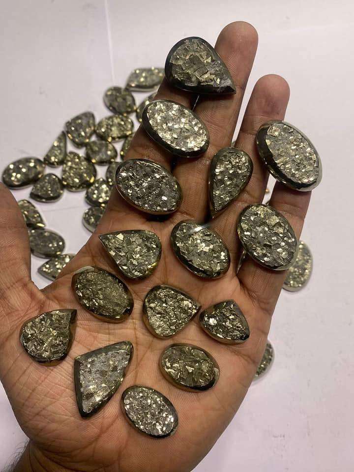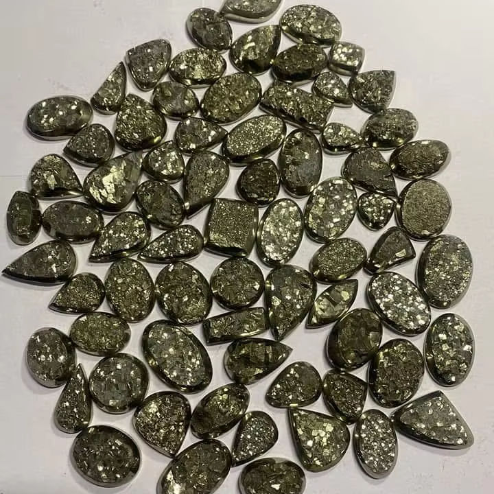ชื่อสินค้า:พลอยหลวมไพไรต์ดรูซี่ธรรมชาติเกรดสูง ทรงคาโบชอน