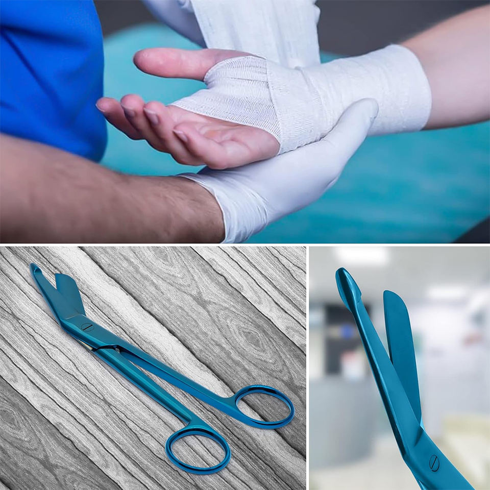 กรรไกรตัดผ้าพันแผลสำหรับใช้เย็บแผลสีฟ้าขอบทื่อทำจากสเตนเลสสตีลขนาด5.5นิ้ว