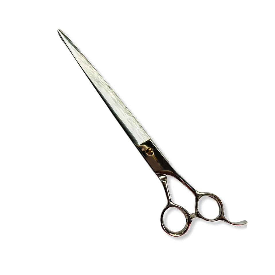 กรรไกรตัดขนสัตว์เลี้ยงเกรดสูงใบมีดปลายแหลมตรงกรรไกรตัดผมสำหรับสัตว์ที่มีที่วางนิ้วมือ