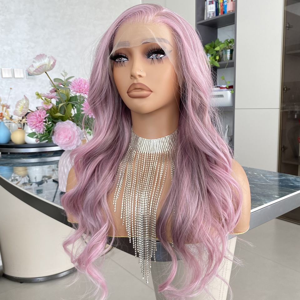วิกผมไฟเบอร์ Futura คุณภาพสูง สีม่วงชมพูใส 13x4 HD วิกผมด้านหน้าแบบใส ทนความร้อน ไฟเบอร์ทนอุณหภูมิสูง ขนาด 20 นิ้ว