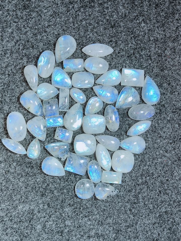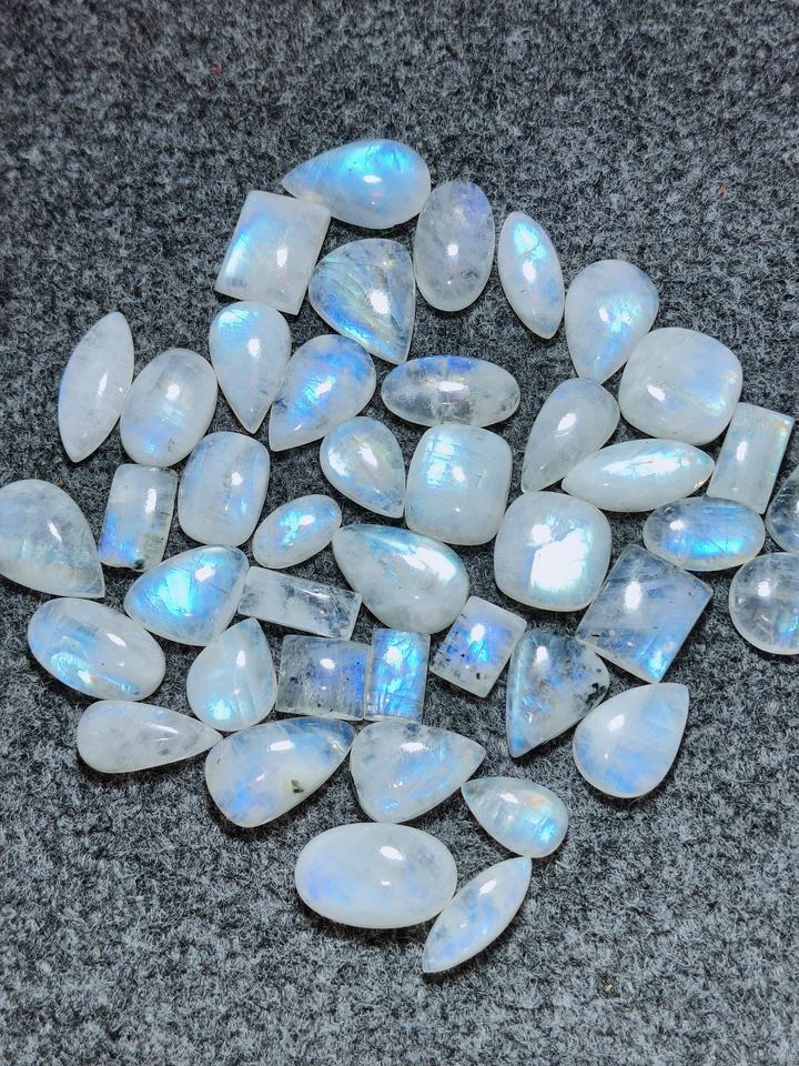 พลอยมูนสโตนสีรุ้งเกรดสูงขนาดหลวมหินมูนสโตนสีรุ้งธรรมชาติคุณภาพสูง