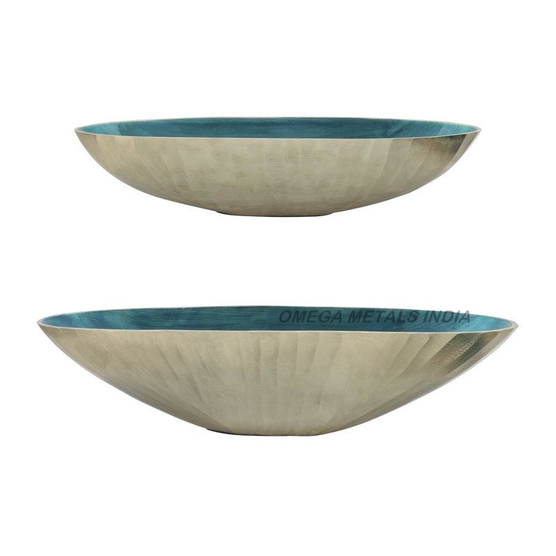 ชามโลหะพื้นผิวสีเงินเกรดสูงดีไซน์คลื่นที่ไม่ซ้ำใครการตกแต่งที่ทันสมัยเน้นสำหรับการรับประทานอาหารที่หรูหราและการตกแต่งบ้านที่หรูหรา