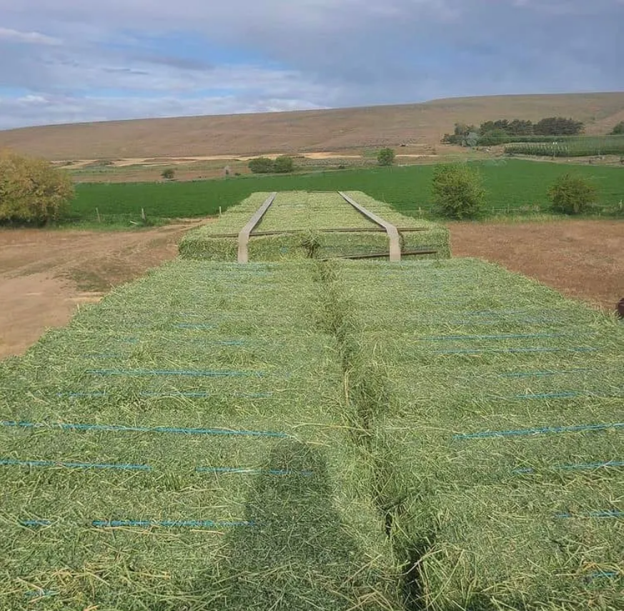 ไขมันหมูตากแห้งเป็นอาหารสัตว์ที่ผลิตด้วยส่วนผสมเช่นหญ้าอัลฟัลฟาฟางข้าวสาลีสำหรับเลี้ยงวัวม้า