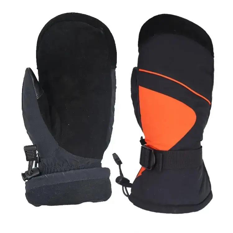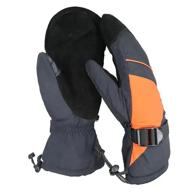 ถุงมือกันลมกันน้ำสำหรับผู้ชายถุงมือเล่นสกีสำหรับฤดูหนาวกันลมวัสดุหนังให้ความอบอุ่น