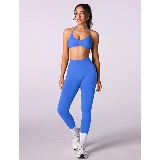 ชุดโยคะแบบกระชับสัดส่วนสำหรับผู้หญิง พร้อมสปอร์ตบราสำหรับคาร์ดิโอ กางเกงเอวสูงสำหรับการออกกำลังกายแบบเข้มข้น ผลิตจากไนลอนและสแปนเด็กซ์ ช่วยรองรับรูปร่าง