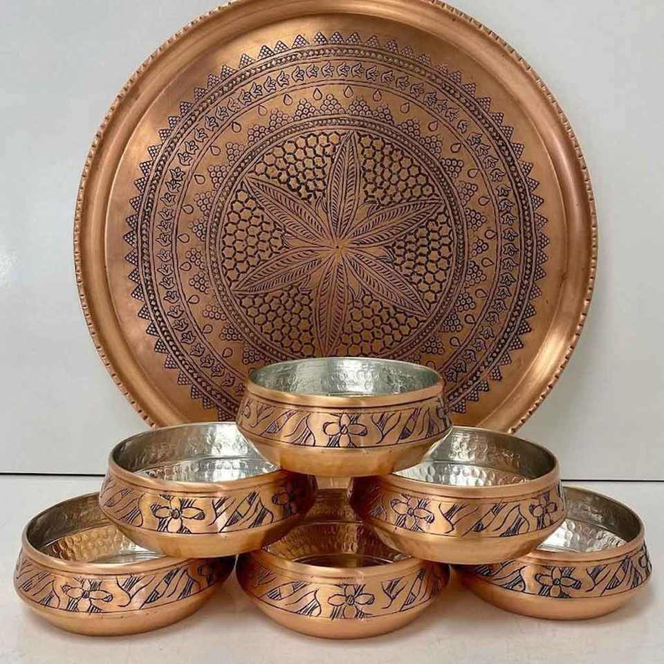ชามอาหารแมวอินเดียสำหรับงานแต่งงานทำจากโลหะทองแดงล้วนงานหัตถกรรมในอินเดีย