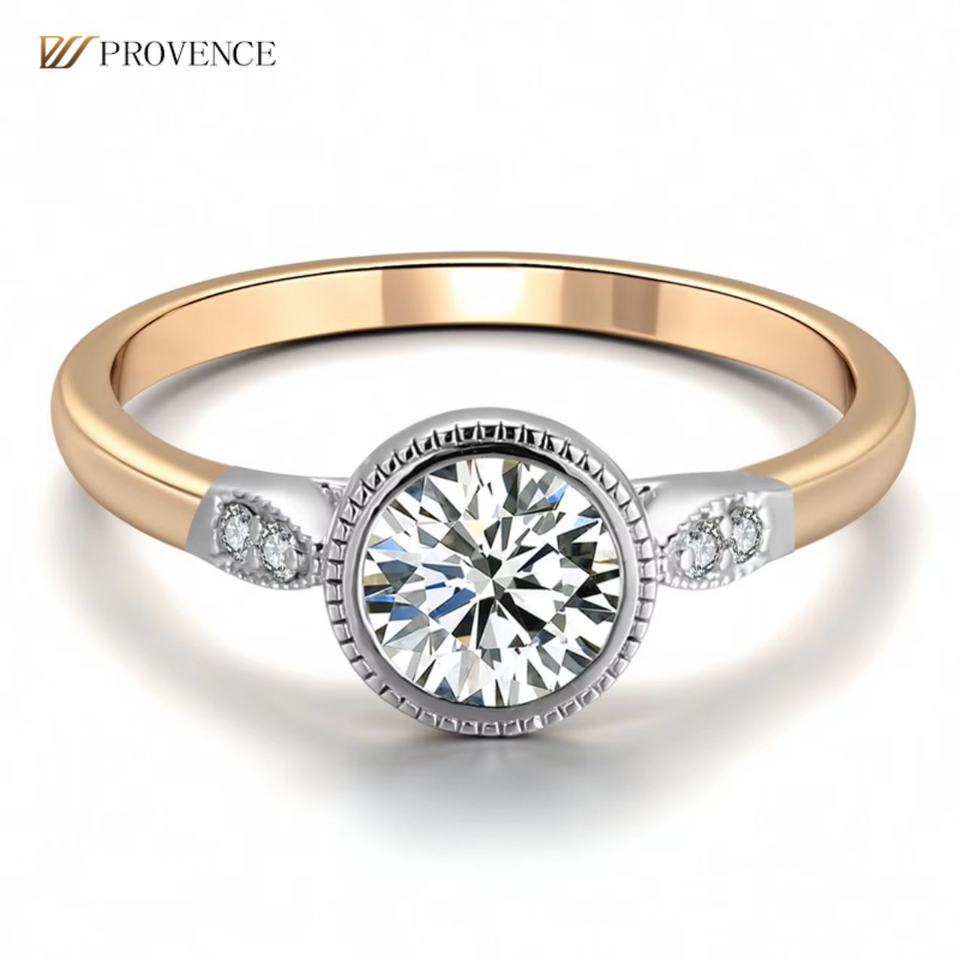 แหวนเพชรโมอิสซาไนต์ทรงกลม ดีไซน์เรียบหรู ทองแท้ 10K 14K 18K สำหรับงานแต่งงานและหมั้น สำหรับผู้หญิง