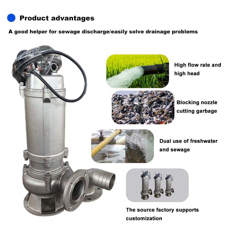 ปั๊มน้ำเสียแบบแรงเหวี่ยงชนิดยกสูง ไม่ก่อให้เกิดการอุดตัน ทำจากสแตนเลส 100 ลบ.ม./ชม. ปั๊มจุ่มใต้น้ำ WQ สำหรับน้ำสกปรก