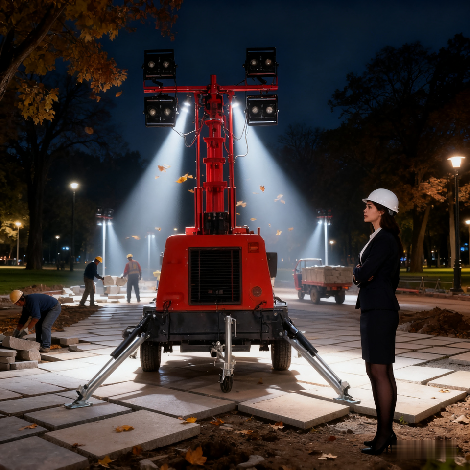 หอคอยไฟดีเซล LED แบบพกพา4x400W หอคอยแสงเคลื่อนที่7เมตรพร้อมยกด้วยมือ