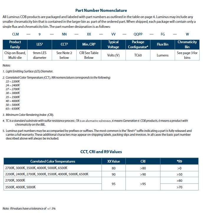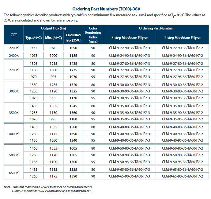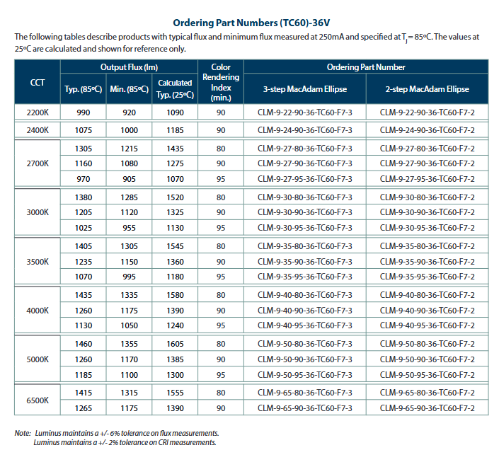 ช่วงฟลักซ์ @ 3000K 90CRI:1205 ~ 3375