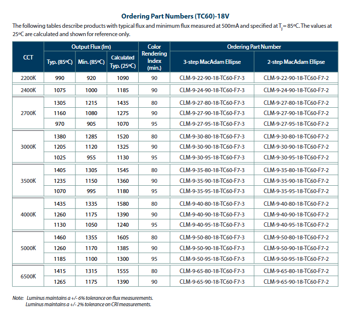 ช่วงฟลักซ์ @ 3000K 90CRI