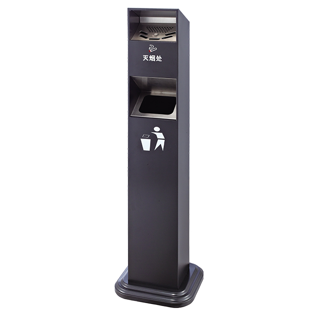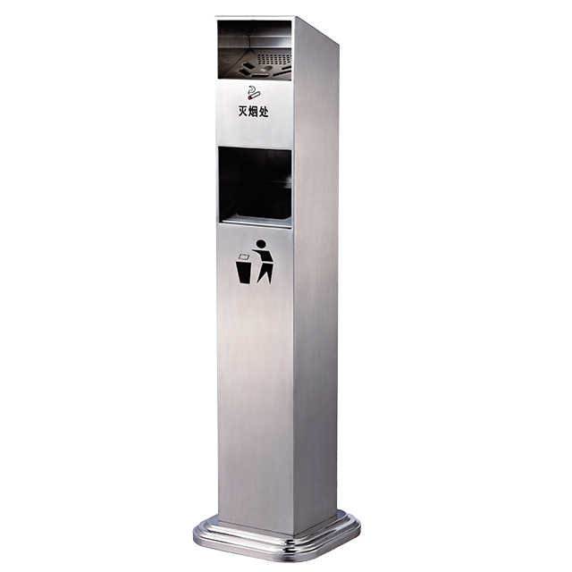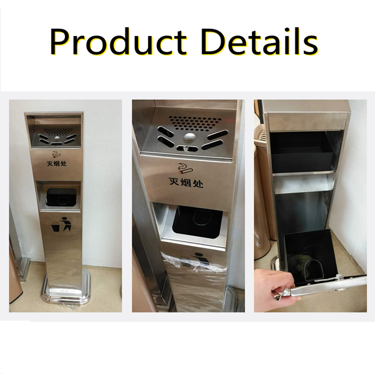 ถังขยะสแตนเลสแบบไร้ควันพร้อมโลหะสูงกลางแจ้งสีเงิน/ดำทองดีไซน์ร่วมสมัยสำหรับทิ้งบุหรี่