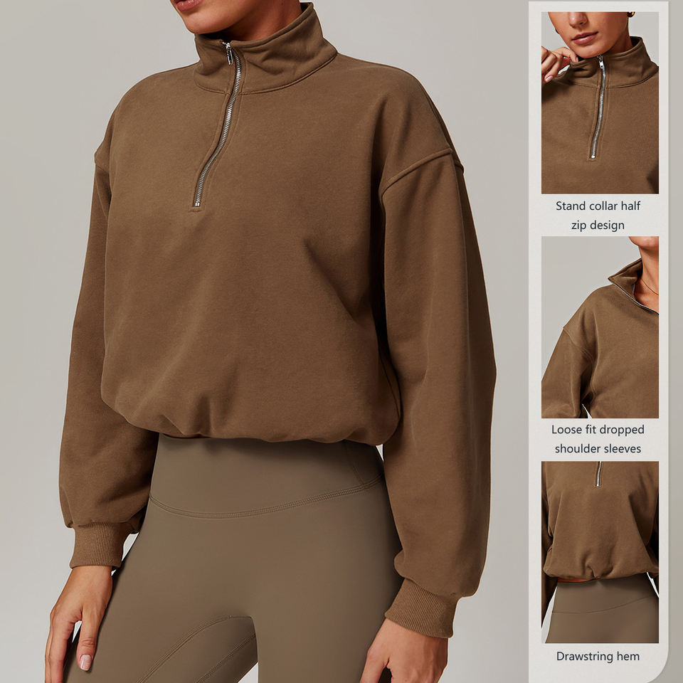 เสื้อสเวตเชิ้ตออกกำลังกายคอสูงสำหรับเล่นกีฬากลางแจ้ง วิ่งออกกำลังกาย มีเชือกผูก ซิป แขนยาวทรงหลวม