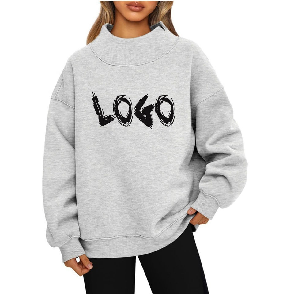 เสื้อสเวตเตอร์คอปกสูงเสื้อสวมหัวโอเวอร์ไซส์ผ้าฟลีซสำหรับผู้หญิง