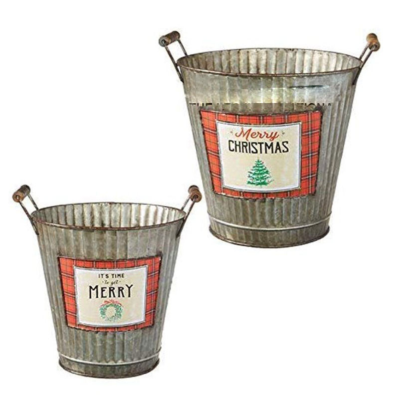 ถังเหล็กเคลือบลายวินเทจแบบคลาสสิกสำหรับตกแต่งวันหยุด เป็นมิตรกับสิ่งแวดล้อม ยอดนิยมสูง เหมาะสำหรับเป็นของขวัญคริสต์มาส