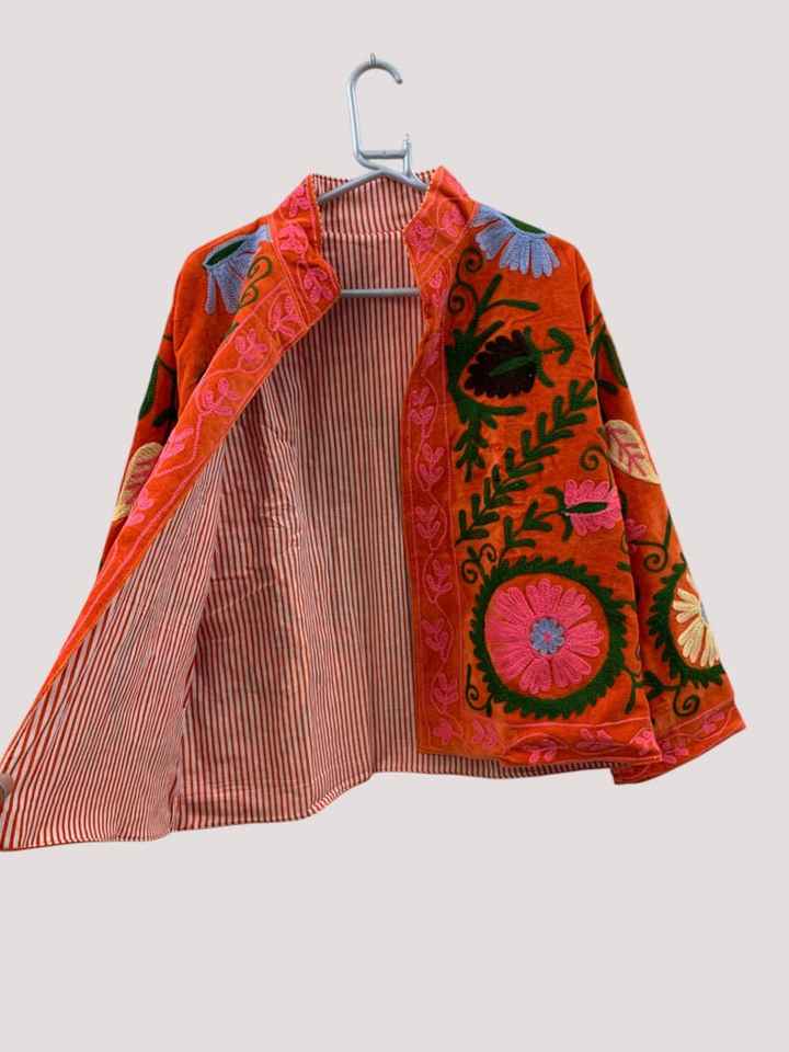 แจ็กเก็ตซูซานินสำหรับผู้หญิงเสื้อคลุมปักลายโบโฮสไตล์วินเทจตามความต้องการ