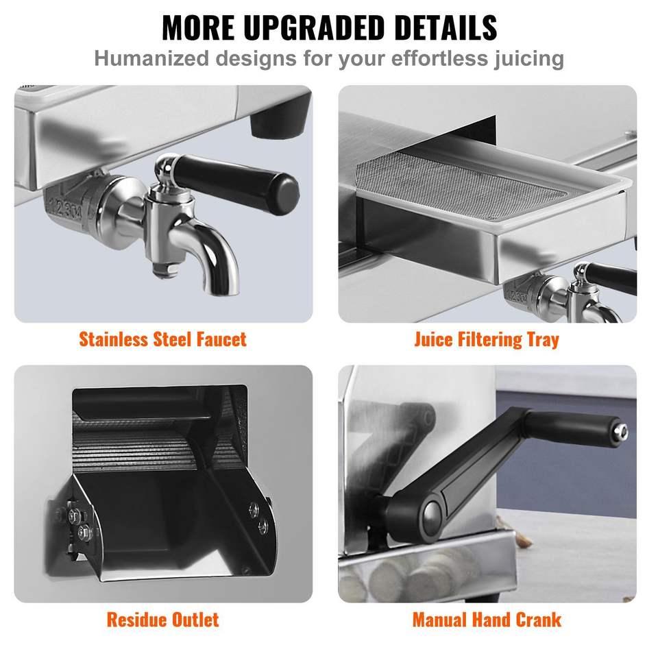 เครื่องคั้นน้ำอ้อยเชิงพาณิชย์ให้ผลลัพธ์สูงเครื่องคั้นน้ำเข้าสแตนเลส3ลูก2.4 \" เครื่องคั้นน้ำเข้าด้วยมือขนาดใหญ่สำหรับ