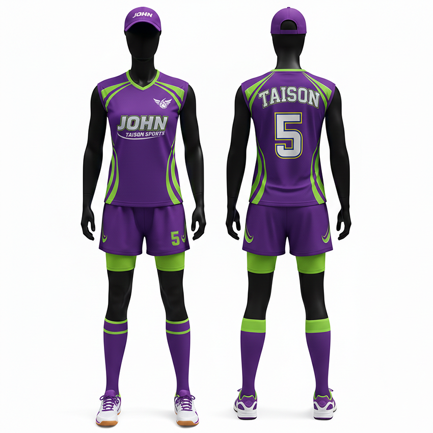 High Performance 160 GSM Breathable Polyester Women Handball Uniform Purple Green Paneling Sublimation Set Handball Uniform