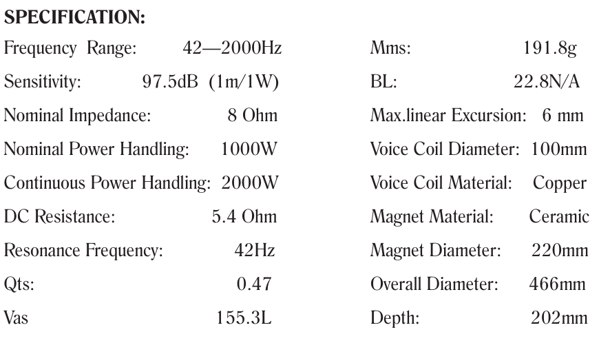 การตอบสนองความถี่:42-2000เฮิร์ต