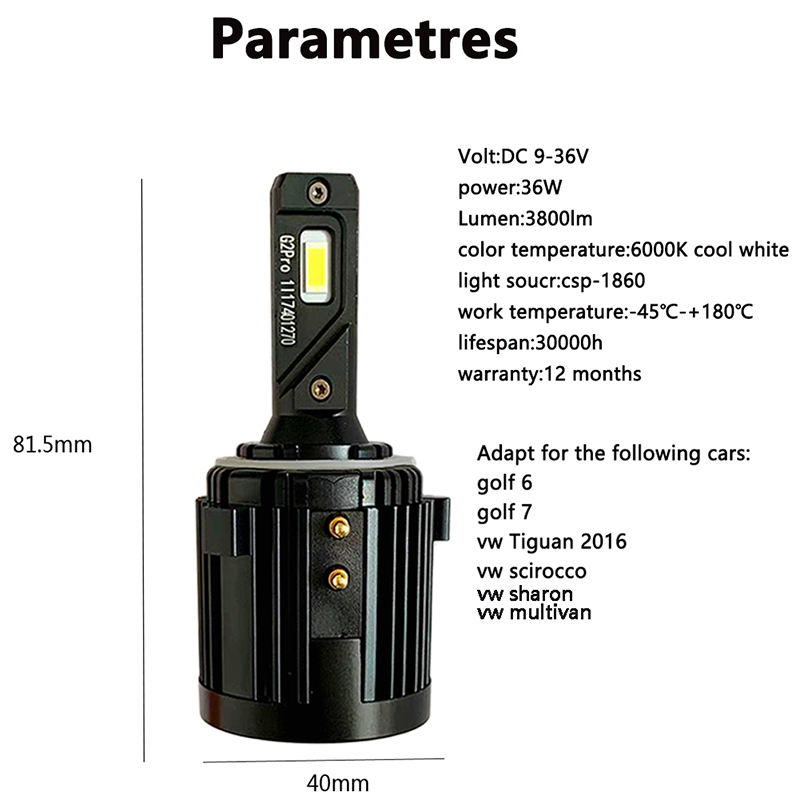 ระบบไฟหน้า LED ประสิทธิภาพสูง ปี 2022 สำหรับรถยนต์ Volkswagen Golf G2: หลอดไฟ H7 และ H15 แบบ Canbus พร้อมอุปกรณ์ดัดแปลงครบชุด