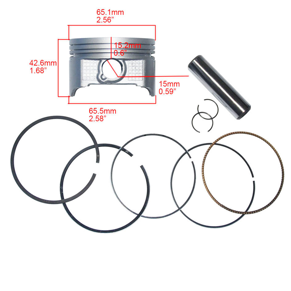 ชุดลูกสูบประสิทธิภาพสูง 250 ซีซี 65.5 มม. สำหรับเครื่องยนต์ Loncin Zongshen Bashan Lifan CB250CC ระบายความร้อนด้วยอากาศ