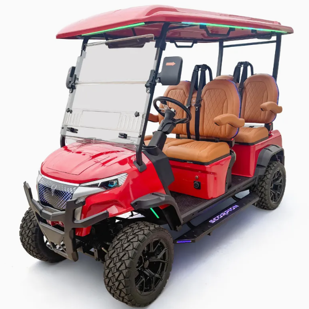 รถกอล์ฟไฟฟ้าสมรรถนะสูง 4 ที่นั่ง แบตเตอรี่ลิเธียมแบบชาร์จได้ พร้อมตัวเลือกเชื้อเพลิง ทนทาน เหมาะสำหรับรีสอร์ทและมหาวิทยาลัย