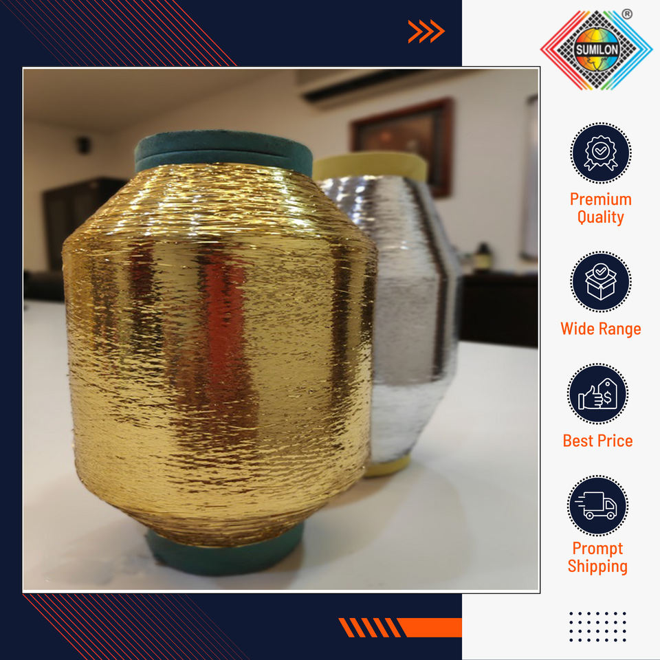 เส้นด้ายโพลีเอสเตอร์โลหะชนิด M ความเงางามแวววาวคุณภาพสูงสำหรับการสั่งซื้อจำนวนมากโดยตรงจากแหล่งกำเนิดของอินเดีย