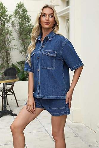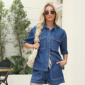 Product Name:Women Denim Shirts & Shorts Sets