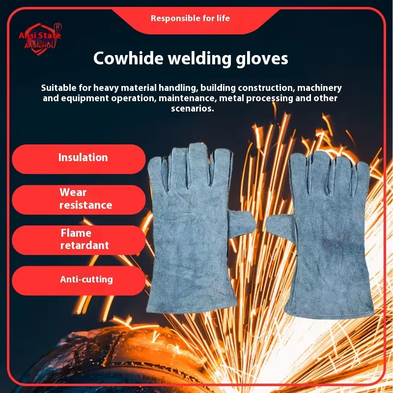 ถุงมือเชื่อมหนังวัวแบบแยกส่วนประสิทธิภาพสูง aramid เสริมความปลอดภัยในอุตสาหกรรมป้องกันมือด้วยคุณสมบัติฟรี