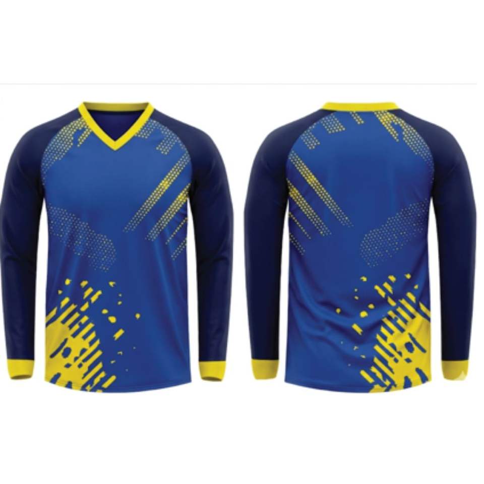 เสื้อคริกเก็ตประสิทธิภาพสูง แขนยาว ทรงแร็กแลน ดีไซน์ขอบเสื้อแบบแถบ ผ้าคูลเทค บุด้วยผ้าฟลีซหนานุ่มให้ความอบอุ่น