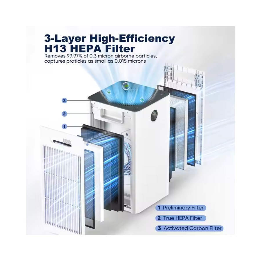 เครื่องฟอกอากาศในบ้านประสิทธิภาพสูงพร้อมตัวกรอง HEPA แบบพกพาช่วยขจัดสารก่อภูมิแพ้ฝุ่นกลิ่นไม่พึงประสงค์ทำจากพลาสติก