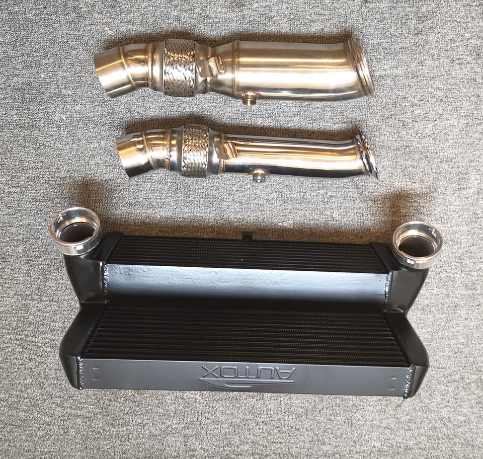 อินเตอร์คูลเลอร์ประสิทธิภาพสูง + เทอร์โบดาวน์ไพพ์สำหรับ BMW X5 X6 35i/Ix 35d E70/E71 F15/F16 2.0L 3.0L