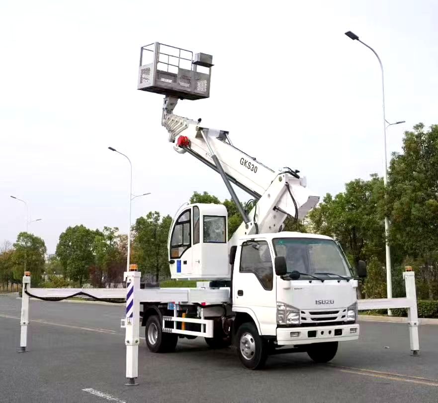 รถบรรทุกยกแบบเทเลสโคปิก ยี่ห้ออีซูซุ 28 เมตร ประสิทธิภาพสูง พร้อมขาตั้งไฮดรอลิกภายนอกสี่ตัว
