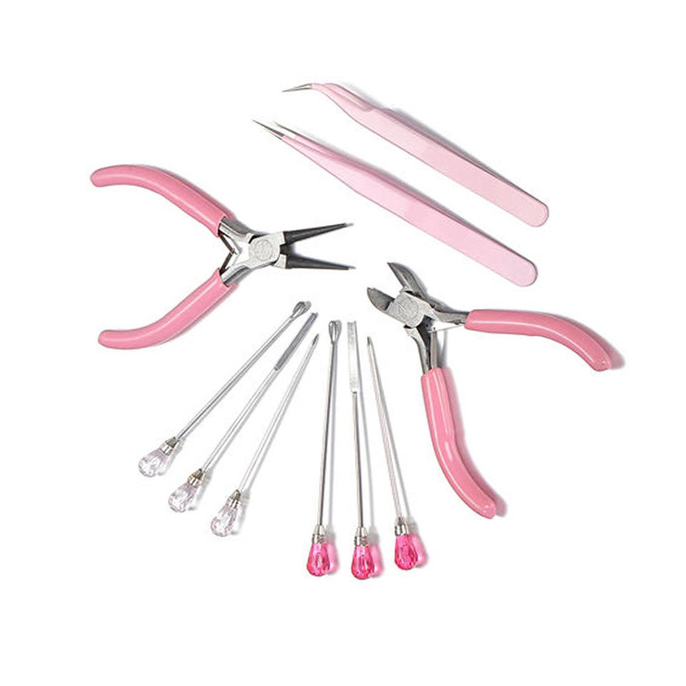ชุดเครื่องมือทำเครื่องประดับประสิทธิภาพสูงเครื่องมือร้อยลูกปัดสเตนเลสสตีลขนาด9มม. ประกอบด้วยเครื่องมือเครื่องประดับคุณภาพสูง