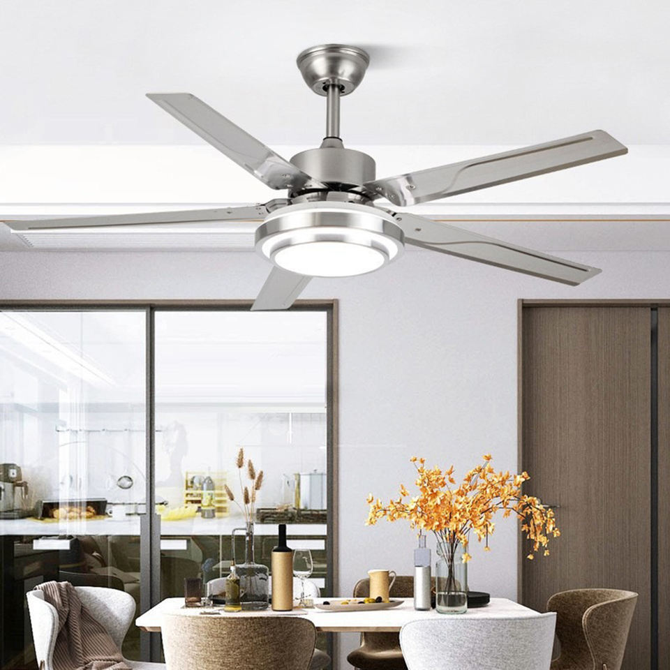 พัดลมเพดาน LED BLDC ประสิทธิภาพสูงทันสมัยพร้อมไฟ5ใบพัด42/52นิ้วรีโมทคอนโทรลมาใหม่สำหรับห้องนอน