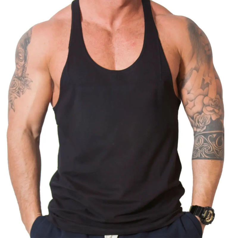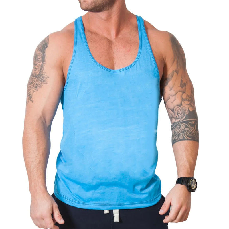 เสื้อกล้ามเข้ารูปกล้ามเนื้อประสิทธิภาพสูงสำหรับผู้ชายสีฟ้าเข้มเหมาะสำหรับเข้ายิมออกกำลังกายและเล่นกีฬาฤดูร้อน