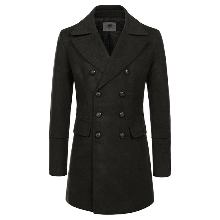 เสื้อโค้ทผู้ชายผ้าวูลแท้ 100% สีพื้น ทรงดับเบิ้ลเบรสต์ กระดุมสองแถว ดีไซน์ทันสมัย สวมใส่สบาย เหมาะสำหรับฤดูหนาว สไตล์ลำลองและสตรีทแฟชั่น