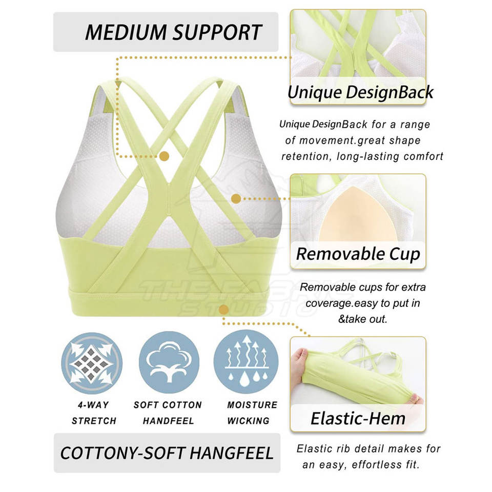 เสื้อชั้นในกีฬาประสิทธิภาพสูง ผลิตจากผ้าพรีเมียม แห้งเร็ว ให้การรองรับที่ดีเยี่ยมและสวมใส่สบายสำหรับการออกกำลังกาย