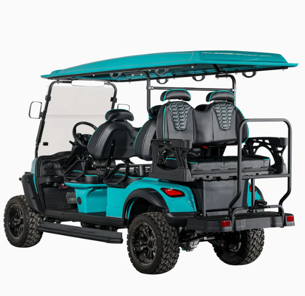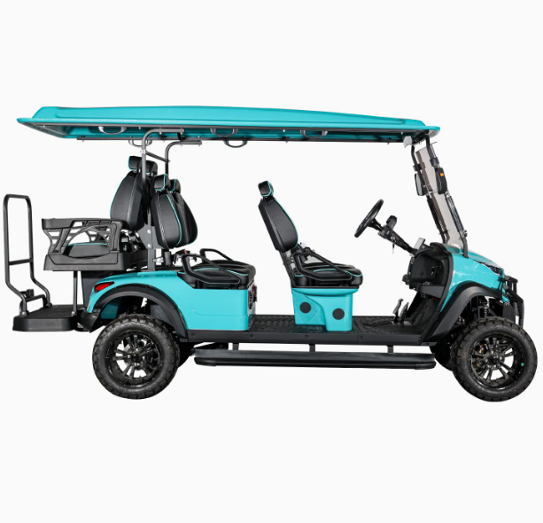 รถกอล์ฟไฟฟ้า 6 ที่นั่ง (4+2) ประสิทธิภาพสูง ผลิตจากสแตนเลสสตีล ทนทาน ใช้แบตเตอรี่ลิเธียม พร้อมเบาะนั่งพับได้ที่นั่งสบาย