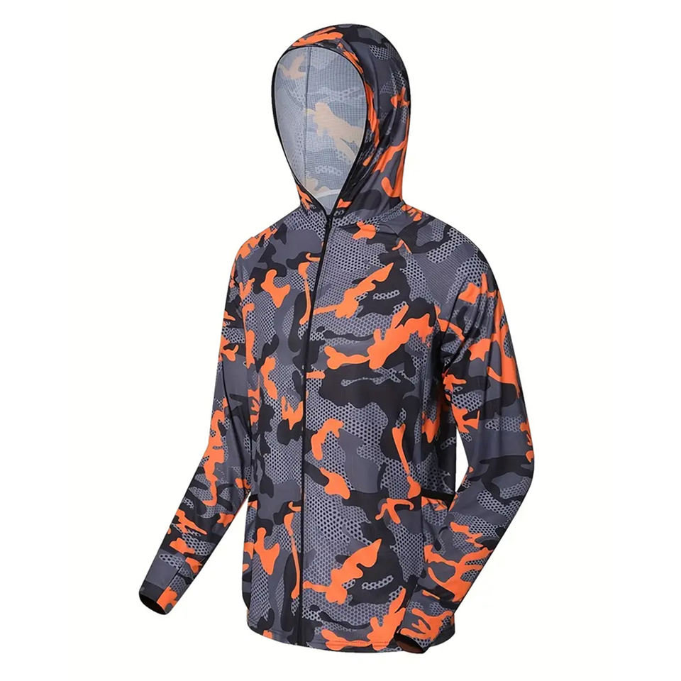 เสื้อฮู้ดตกปลาแบบซับลิเมชั่นประสิทธิภาพสูง น้ำหนักเบา ป้องกันแสงแดด UPF แห้งเร็ว เหมาะสำหรับกิจกรรมกลางแจ้งในฤดูร้อน
