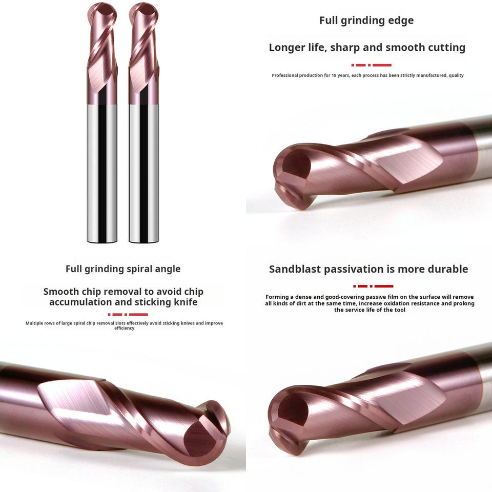 ดอกกัดปลายมน 2 ฟลุต ทำจากเหล็กทังสเตนอัลลอยด์ประสิทธิภาพสูง สำหรับวัสดุที่มีความแข็งสูง HRC60 ซีรีส์ความแม่นยำสูง รองรับ OEM/ODM ความเร็วสูง